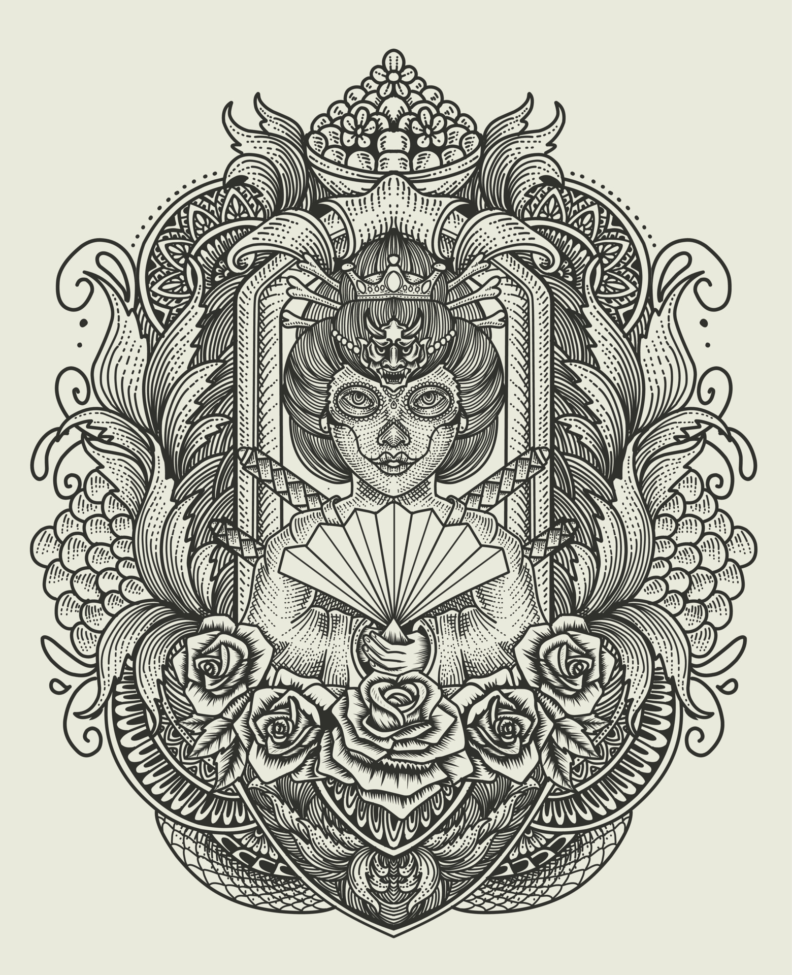 Triple Lunar Goddess Hecate Ancient Greek Mythology Hand Drawn Black And White Isolated Vector Illustration Blackwork Flash Tattoo Or Print Design Stock Vektorgrafik Adobe Stock